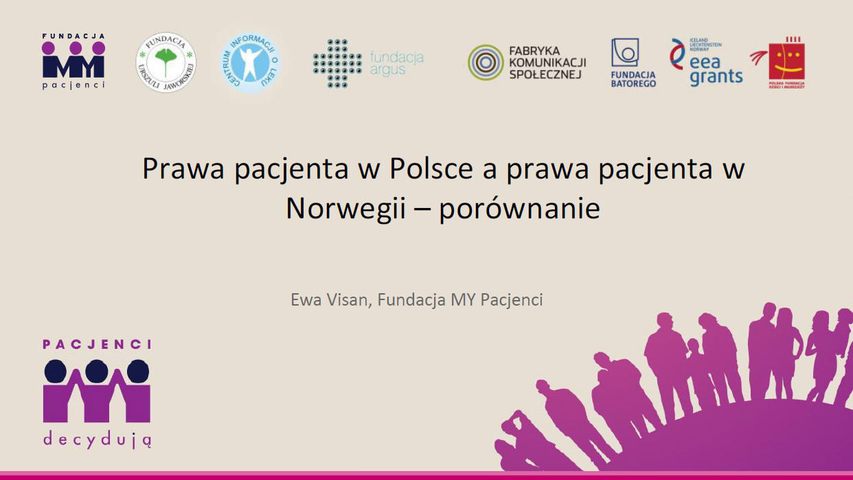 Dużym blokiem tematycznym były też prawa pacjenta. Omówiliśmy wspólnie z przedstawicielem Norweskiego Stowarzyszenia Pacjentów, Knutem Fredrikiem Thorne prawa w Norwegii i niezwykle rozwinięte tam procesy partycypacji pacjentów. Przyglądaliśmy się również prawom pacjenta w Polsce i rozmawialiśmy co jeszcze należałoby w nich zmienić.