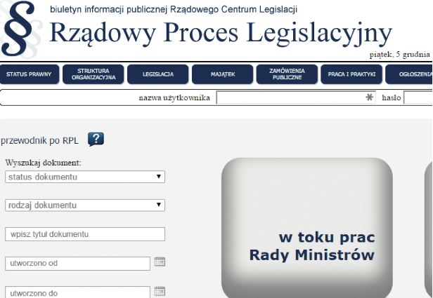 Rządowy Proces Legislacyjny - projekty ustaw i rozporządzeń |