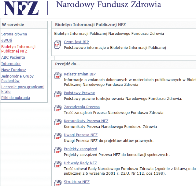 Na stronie Biuletynu Informacji Publicznej NFZ: www.nfz.gov.pl/bip