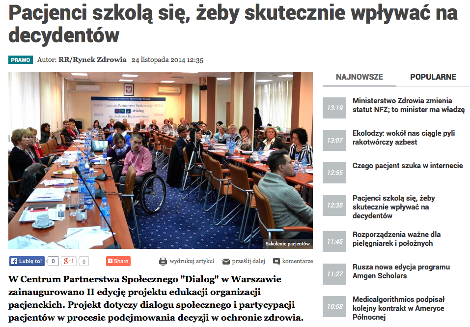 W Centrum Partnerstwa Społecznego "Dialog" w Warszawie zainaugurowano II edycje projektu edukacji organizacji pacjenckich. Projekt dotyczy dialogu społecznego i partycypacji pacjentów w procesie podejmowania decyzji w ochronie zdrowia.