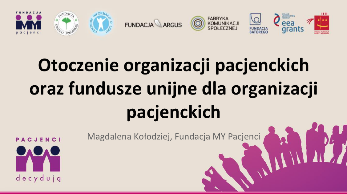 Magdalena Kołodziej, Fundacja MY Pacjenci Otoczenie organizacji pacjenckich oraz fundusze unijne dla organizacji pacjenckich Prezentacja (link do pobrania) |