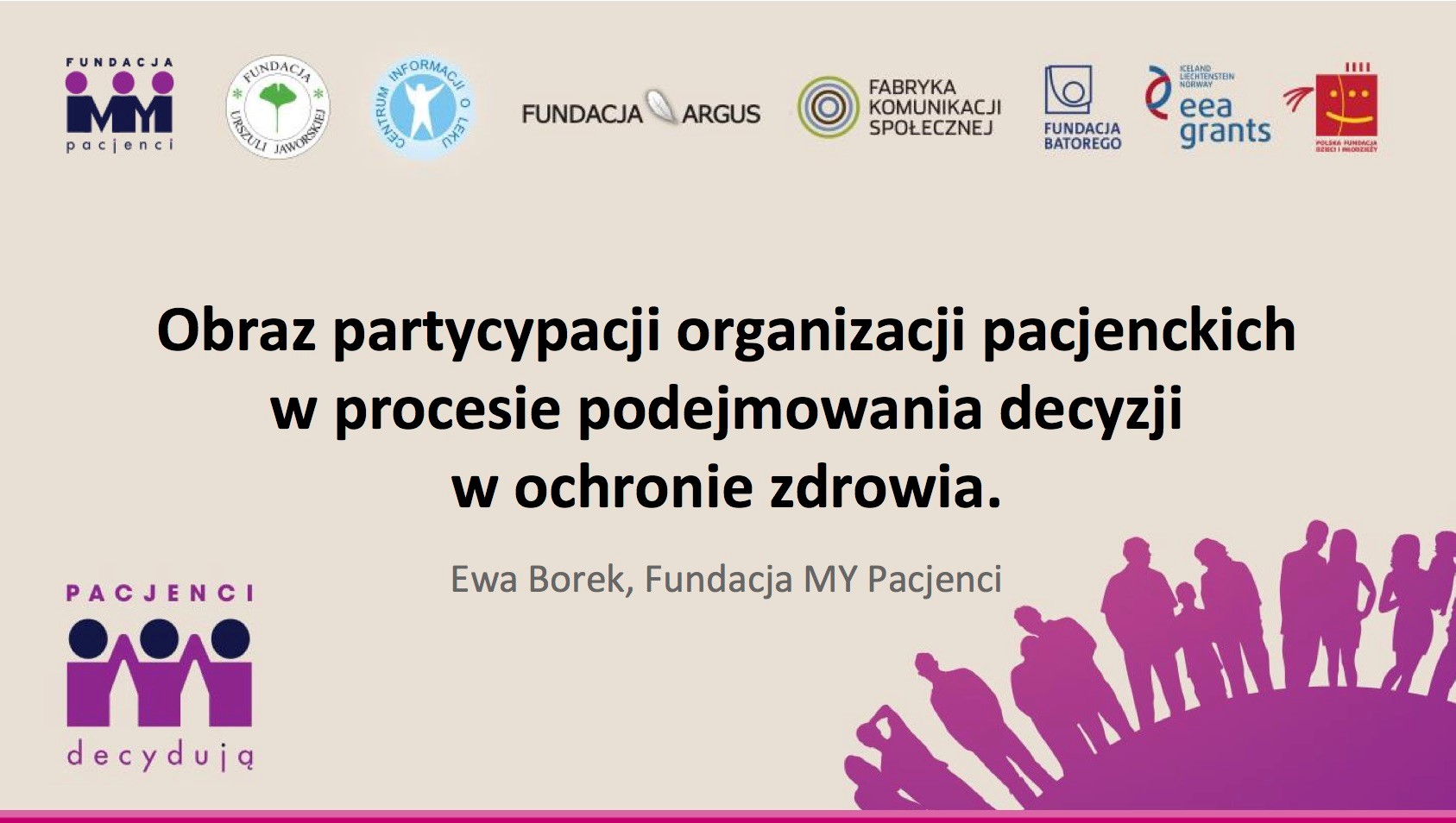 Ewa Borek, Fundacja MY Pacjenci Obraz partycypacji organizacji pacjenckich w procesie podejmowania decyzji Prezentacja (link do pobrania)